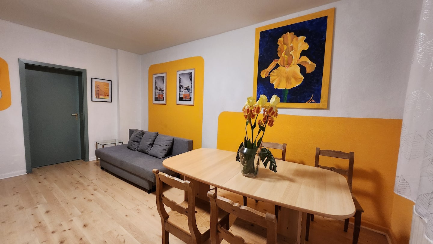ELENA flat IRIS offers a spacious two-bedroom apartment with a bright living space, fully equipped kitchen, free Wi-Fi and family-friendly comfort. Guests enjoy modern amenities, easy self check-in and everything needed for a relaxing stay.