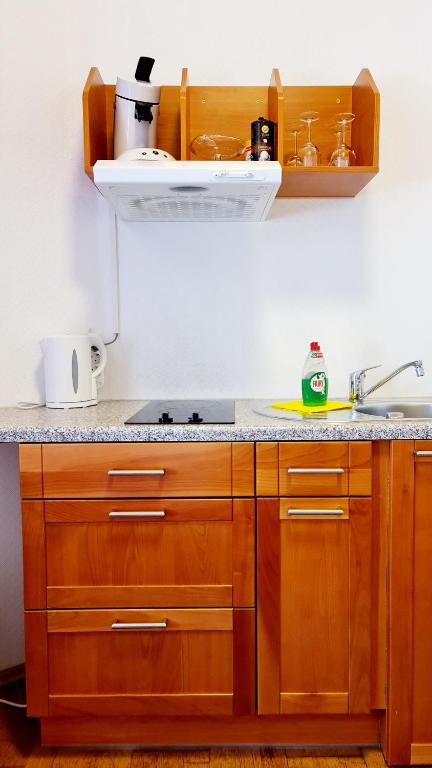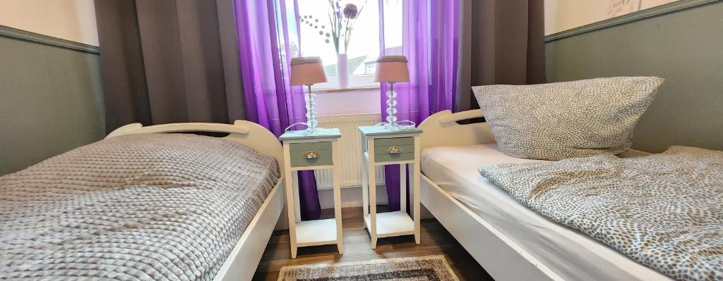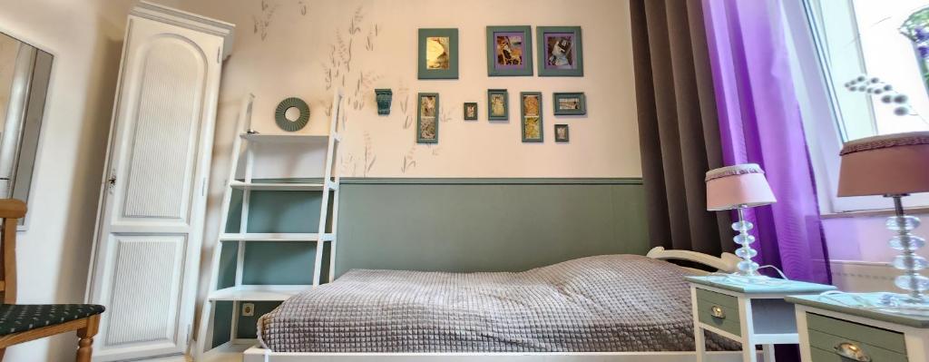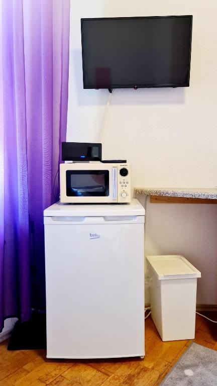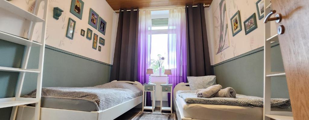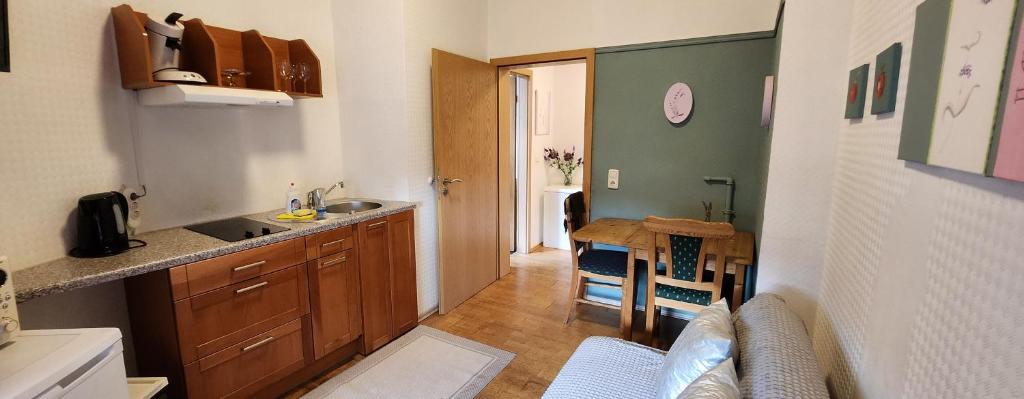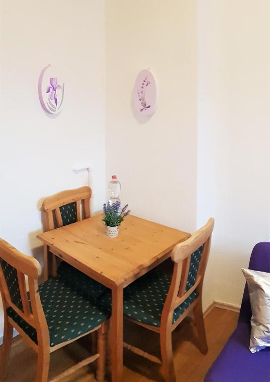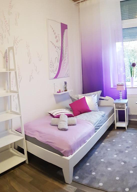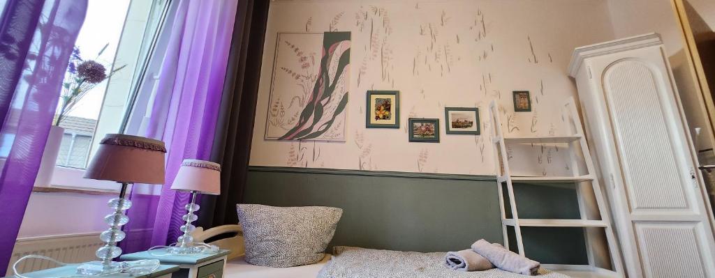Cozy one-bedroom ELENA flat Lavendel in Duisburg Zentrum features a living room, kitchenette with coffee machine, microwave, stovetop, washing machine, and free WiFi. Pet-friendly, ideal for solo travellers or couples.