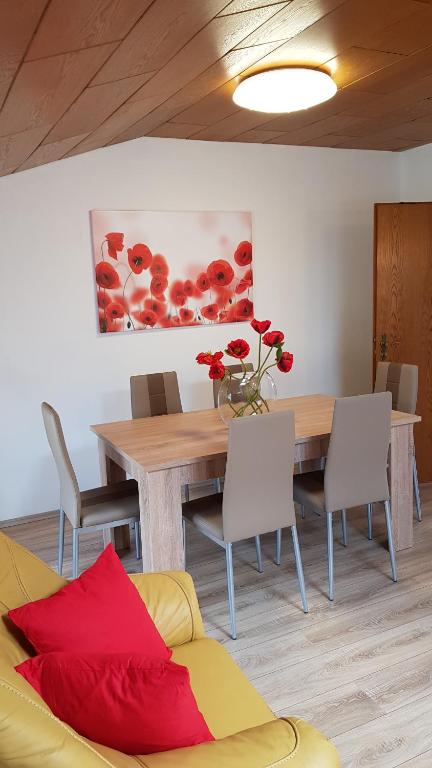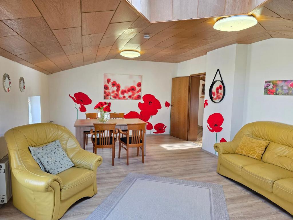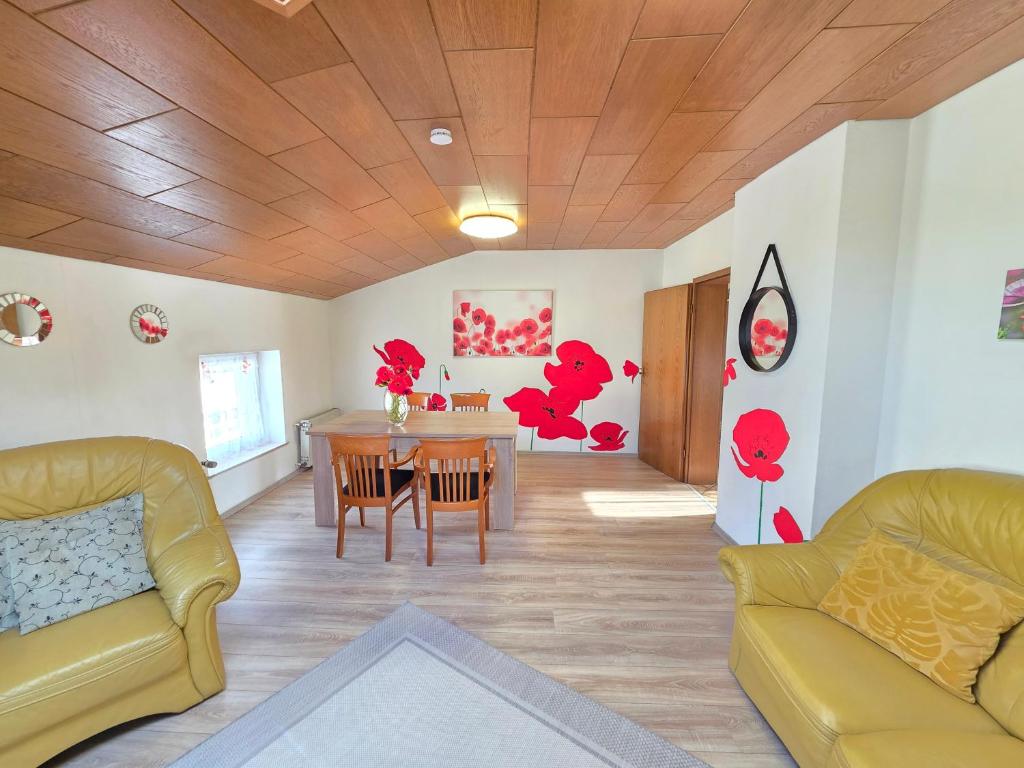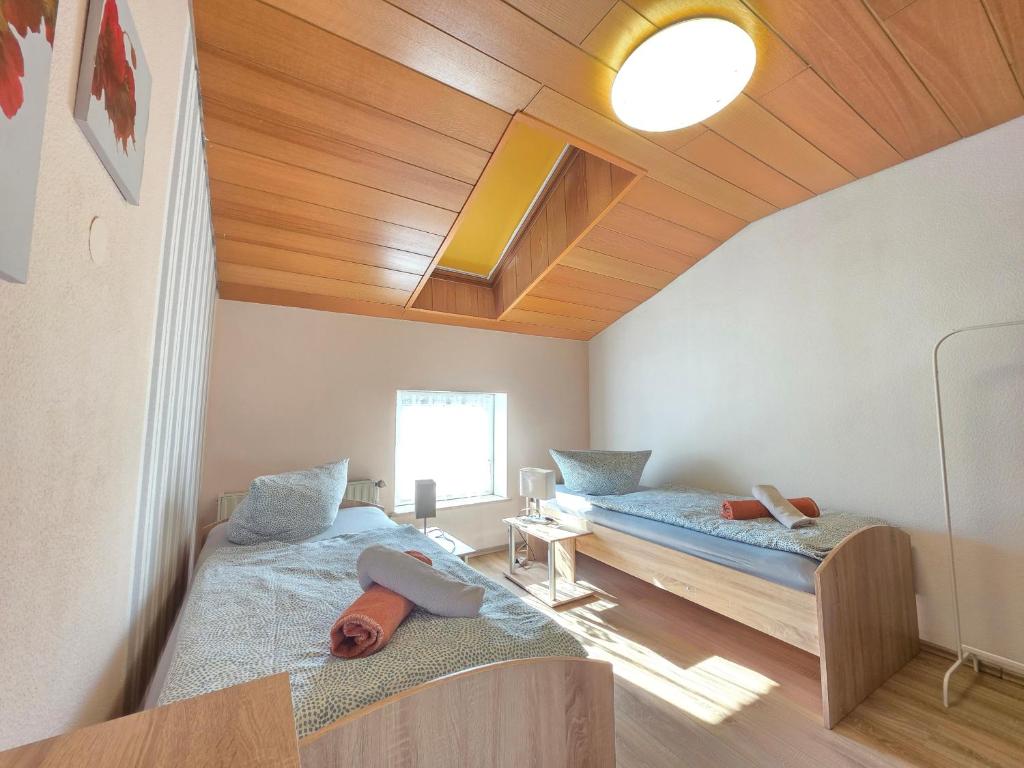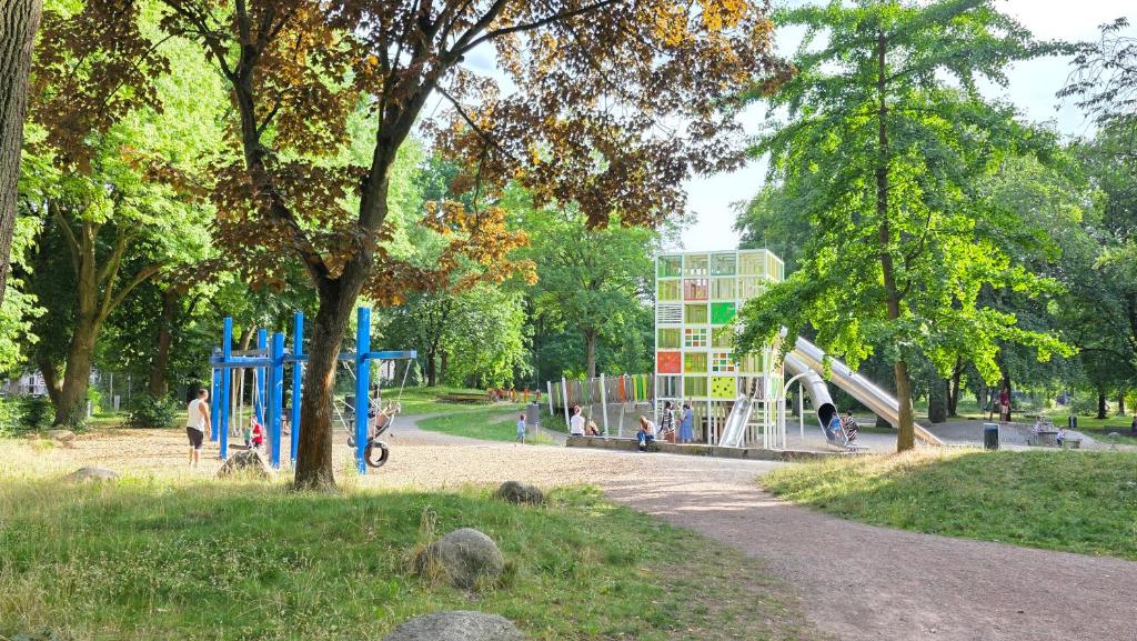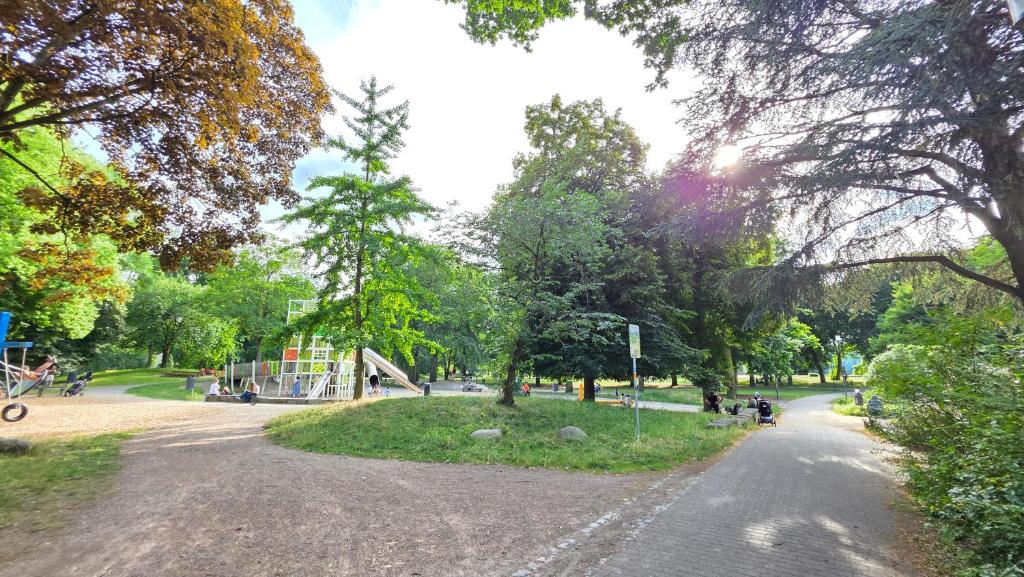 Spacious ELENA flat Mohn in Duisburg Zentrum offers two bedrooms, living room, fully equipped kitchen, coffee machine, microwave, washing machine, and free WiFi. Perfect for families or groups seeking comfort and style.