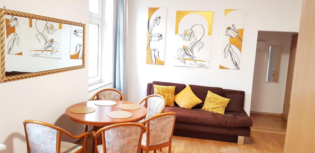 ELENA flat Tulpe Duisburg Zentrum offers a spacious, pet-friendly apartment with free WiFi, a kitchenette, washing machine and a cozy living room with a sofa bed. Guests enjoy modern comforts, ample space and convenient in-room amenities.